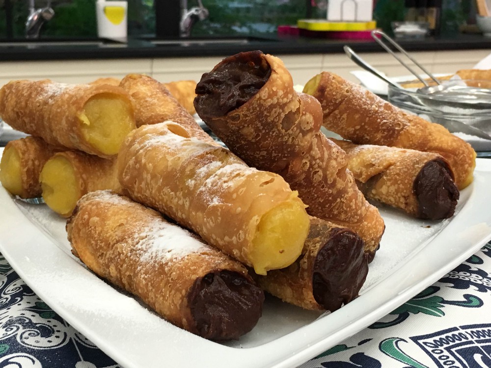 É preciso cronometrar tudo, uma vez que o processo de fabricação é tão artesanal que qualquer atraso pode prejudicar as vendas. A massa à base de farinha de trigo precisa de um tempo de fermentação antes de ser transformada em cilindro (única parte mecanizada) e disposta em uma forma para ser frita. No óleo quente, permanece por até 30 minutos, quando é retirada para escorrer e ficar “sequinha”, como descreve seu Antônio. Neste intervalo, o creme que vai rechear o cannoli (não à toa, canudo em italiano) é preparado com essências de baunilha ou chocolate para, em seguida, ser colocado dentro do cilindro e se transformar no doce mais desejado nos intervalos da Javari.